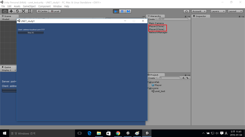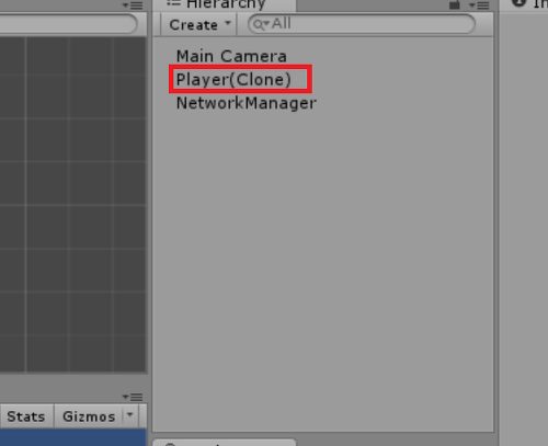 게임창에서 LAN HOST를 눌러 Hierarchy에 Player(clone)가 생기는지 확인한다.